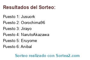 Lista de participantes: Jusuork(23), Anibal(21), Daizuky(21), Jirayo(21), KairiMizukami(20), BryanUchiha(17), kendor(17), KenshiYazuki(17), Oorochima96(17), marcelokiba(16), pepeross(14), NarutoAkazawa(12), Fayrot(11), hanabi(11), stein(11), elmejor(10), LUCIAN(9), Janet(6), Cristopher(4), Eruyome(4), BorutoUchiha(3), KaguraUzuki(3).