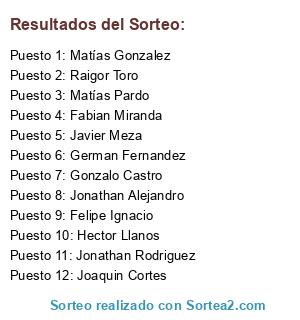 Resultados del sorteo: