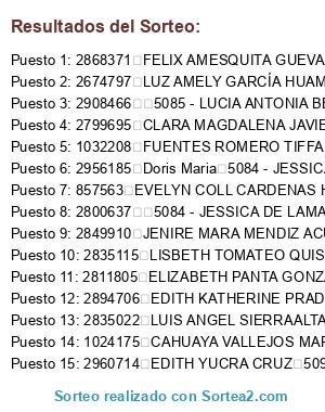 Resultados del sorteo: