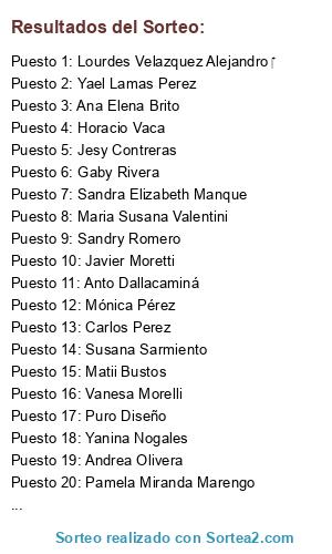 Lista de participantes: Josefina Uría(2 participaciones), Matias Diaz(2 participaciones), Damian Rodriguez(2 participaciones), Ne Miranda(2 participaciones), Carlos Perez(2 participaciones), Lourdes Chaneton(2 participaciones), Amparo Garcia(2 participaciones), Martin Gimenez(2 participaciones), Mariela Angelica(2 participaciones), Pipi Tobío Costas(2 participaciones), Dulce Vanina DE Pereyra(2 participaciones), Yanina Arnedo(2 participaciones), Nahuel Russo(2 participaciones), Lourdes Velazquez Alejandro (2 participaciones), Fer Herrera(2 participaciones), Veronica Urzagasti(2 participaciones), Mónica Pérez(2 participaciones), Mariel Delgado(2 participaciones), Pablo Gabriel(2 participaciones), Pamela Miranda Marengo(2 participaciones), Horacio Vaca(2 participaciones), Andrea Blasco(2 participaciones), Carii Ferreyra(2 participaciones), Gisela Garnica(2 participaciones), Vanesa Morelli(2 participaciones), Lady Maryann(2 participaciones), Jimena Kilibarda(2 participaciones), Luciana Cassina(2 participaciones), Leonardo Mayo(2 participaciones), Fer Dorado(2 participaciones), Pablo Vaca(2 participaciones), Francisco Laiseca(2 participaciones), Yael Lamas Perez(2 participaciones), Daniela Emilce(2 participaciones), Maxi Andrada(2 participaciones), Maria Jose Balcarce(2 participaciones), Mariie Lizz(2 participaciones), Elegante Avelina(2 participaciones), Maryte Acuña(2 participaciones), Javier Moretti(2 participaciones), Silvana Sanchez(2 participaciones), Carolina Rossi(2 participaciones), Carla Barro(2 participaciones), Maria Flores(2 participaciones), Sandra Elizabeth Manque(2 participaciones), Judith De Los Angeles(2 participaciones), Matii Bustos(2 participaciones), Cristian Solá(2 participaciones), Nelly Fernanda Torres(2 participaciones), Maira Belén Méndez(2 participaciones), Cristian Lopez(2 participaciones), Rochiio Guanca(2 participaciones), Georgina Marchetti(2 participaciones), Eliana Nuñez(2 participaciones), Belen Gonzalez(2 participaciones), Sandry Romero(2 participaciones), Maria Fernanda Nuñez(2 participaciones), Maria Susana Valentini(2 participaciones), Ariel Carr(2 participaciones), Andrea Olivera(2 participaciones), Belu Baigorria(2 participaciones), Maru Burgos(2 participaciones), Cristian Gonzalez(2 participaciones), Maria Belen(2 participaciones), Gaby Rivera(2 participaciones), Mauro Gomez Malco(2 participaciones), Leila Castelli(2 participaciones), Emilio Martín Sisterna(2 participaciones), Andres Ricardo Paco(2 participaciones), Yanina Nogales(2 participaciones), Ángela Goku Pereyra(2 participaciones), Maximiliano Mura(2 participaciones), Marcos Franco(2 participaciones), Susana Sarmiento(2 participaciones), Jesy Contreras(2 participaciones), Rocío Muñoz(2 participaciones), Marinita Tiburcio(2 participaciones), Luis Carraro(2 participaciones), Flor Abril Abán(2 participaciones), Analia Veronica Villafañe (2 participaciones), Claudia Juárez(2 participaciones), Natalia Saravia(2 participaciones), Santi Acuña(2 participaciones), Andrea Mariana Amador(2 participaciones), Nadia Galindo(2 participaciones), Barbara Barrios(2 participaciones), Noelia Monserrat(2 participaciones), Mónica Neme(2 participaciones), Queña Cosas Muy Ricas(2 participaciones), Anita Abán(2 participaciones), Mauge Ortega(2 participaciones), Puro Diseño(2 participaciones), Ariel Echenique(2 participaciones), Doris Eliana Gonzales(2 participaciones), Analia Mamani(2 participaciones), Ana Elena Brito(2 participaciones), Adriana Barrionuevo(2 participaciones), Anto Dallacaminá(2 participaciones), Andrea Veronica(2 participaciones).