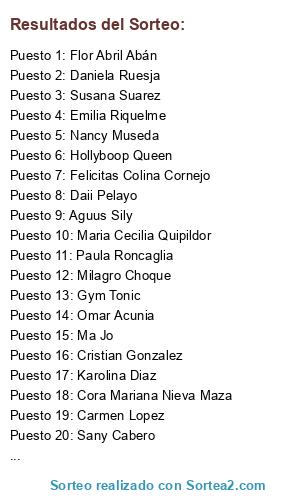 Lista de participantes: Gym Tonic(2 participaciones), Sany Cabero(2 participaciones), Belen Gonzalez(2 participaciones), Milagro Choque(2 participaciones), Cristian Gonzalez(2 participaciones), Beth Li(2 participaciones), Cora Mariana Nieva Maza(2 participaciones), Pamela Miranda Marengo(2 participaciones), Aguus Sily(2 participaciones), Daniela Ruesja(2 participaciones), Maria Cecilia Quipildor(2 participaciones), Paula Roncaglia(2 participaciones), Hollyboop Queen(2 participaciones), Laura Ágostina Panuccio(2 participaciones), Daniel Salva(2 participaciones), Andrea Olivera(2 participaciones), Susana Suarez(2 participaciones), Edgardo Corimayo(2 participaciones), Emilia Riquelme(2 participaciones), Felicitas Colina Cornejo(2 participaciones), Ale Ortiz(2 participaciones), Omar Acunia(2 participaciones), Karolina Diaz(2 participaciones), Nancy Museda(2 participaciones), Judith Juarez(2 participaciones), Markitos Lopez(2 participaciones), Ma Jo(2 participaciones), Fernanda Ardaya(2 participaciones), Carmen Lopez(2 participaciones), CeCe Perez(2 participaciones), Pablo Daniel Gutierrez(2 participaciones), Daii Pelayo(2 participaciones), Flor Abril Abán(2 participaciones), Mar Sol(2 participaciones).