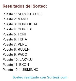 Lista de participantes: Cebollo, comovaeso, Garzzo, gimpo, Ivanquel, ivanx7, luisgon, Nando.