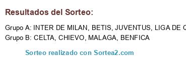 Lista de participantes: INTER DE MILAN, BENFICA, JUVENTUS, MALAGA, LIGA DE QUITO, CELTA, CHIEVO, BETIS.