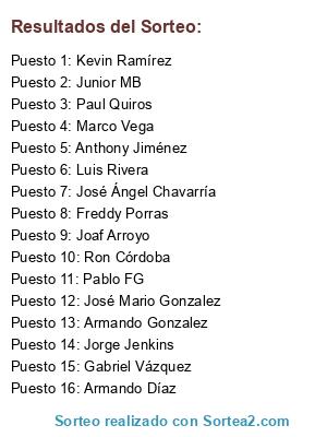 Lista de participantes: Anthony Jiménez, Armando Díaz, Armando Gonzalez, Freddy Porras, Gabriel Vázquez, Joaf Arroyo, Jorge Jenkins, José Ángel Chavarría, José Mario Gonzalez, Junior MB, Kevin Ramírez, Luis Rivera, Marco Vega, Pablo FG, Paul Quiros, Ron Córdoba.