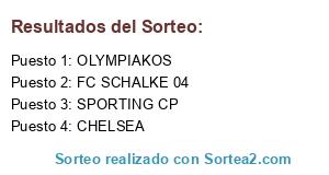 Lista de participantes: CHELSEA, SPORTING CP, OLYMPIAKOS, FC SCHALKE 04.
