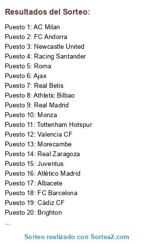 Resultados del sorteo: