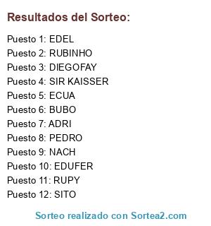 Resultados del sorteo:
