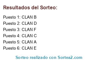 Lista de participantes: CLAN A, CLAN B, CLAN C, CLAN D, CLAN E, CLAN F.