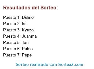 Lista de participantes: Pepe, Pablo, Isi, Kyuzo, Delirio, Juanma, Ton.