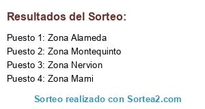 Lista de participantes: Zona Alameda, Zona Nervion, Zona Mami, Zona Montequinto.