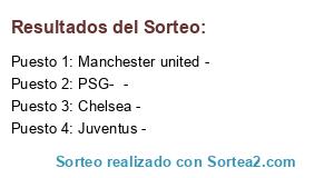Lista de participantes: Barcelona, Real madrid- , PSG- - , Juventus - , Liberpol - , Manchester City -, Chelsea - , Bayer Munich -, Manchester united - , Ac Milan - , Atlético Madrid -, Galatasaray-.