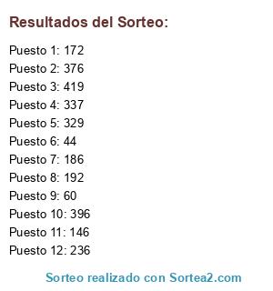Resultados del sorteo: