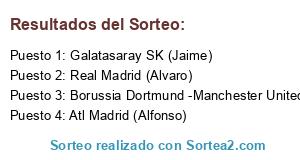 Lista de participantes: Real Madrid (Alvaro), Atl Madrid (Alfonso), Galatasaray SK (Jaime), Borussia Dortmund -Manchester United.