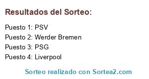Lista de participantes: PSV, PSG, Liverpool, Werder Bremen.