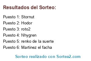 Lista de participantes: Hodor, Nhygren, Stornut, renko de la suerte, roto2, Martinez el facha.