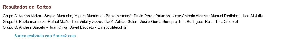 Lista de participantes: David Pérez Palacios - Jose Antonio Alcazar, Miguel Manrique - Pablo Mercadé, Karlos Kleiza - Sergio Manucho, Adrian Soler - Josito Gorda Siempre, Manuel Redinho - Jose M.Julia, Pablo martinez - Rafael Mañe, Eric Rodriguez Ruiz - Eric Cristofol, David Lagueto - Elvis Xiuhtecuhtli, Toni Vidal y Zizzou Lladó, Andres Barcelo y Joan Oliva.