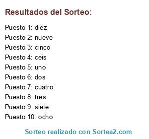 Lista de participantes: uno, dos, tres, cuatro, cinco, ceis, siete, ocho, nueve, diez.