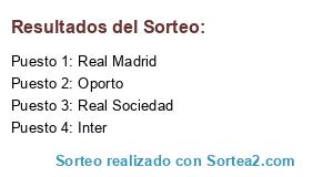 Lista de participantes: Real Sociedad, Inter, Real Madrid, Oporto.