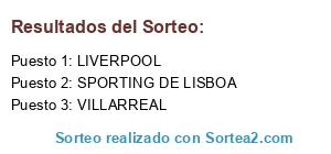 Lista de participantes: LIVERPOOL, SPORTING DE LISBOA, VILLARREAL.