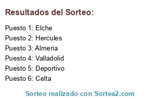Lista de participantes: Deportivo, Hercules, Celta, Valladolid, Elche, Almeria.