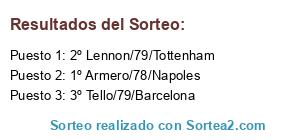Lista de participantes: 1º Armero/78/Napoles, 2º Lennon/79/Tottenham, 3º Tello/79/Barcelona.