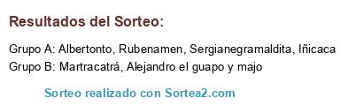 Lista de participantes: Albertonto, Iñicaca, Rubenamen, Alejandro el guapo y majo, Martracatrá, Sergianegramaldita.