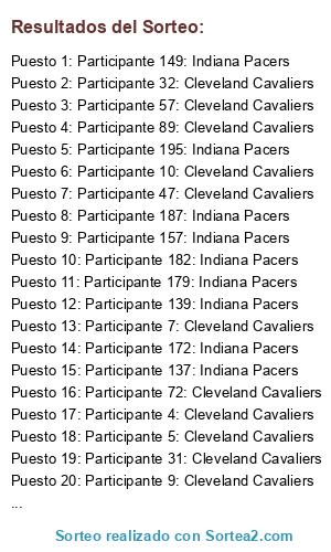 - Puesto 174: Participante 1: Cleveland Cavaliers