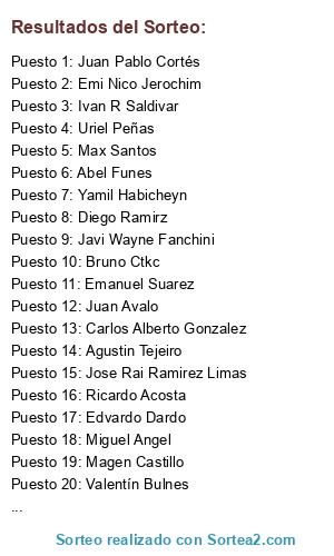 Lista de participantes: Ivan R Saldivar, Juan Avalo, Edvardo Dardo, Mássimo Quirolo, Miguel Angel, Valentín Bulnes, Emanuel Suarez, Max Santos, Uriel Peñas, Bruno Ctkc, Ricardo Acosta, Abel Funes, Sebastian Carrizo, Arturo Miranda, Yamil Habicheyn, Franco Gómez, Orlando Dario, Diego Ramirz, Javi Wayne Fanchini, Juan Pablo Cortés, Agustin Tejeiro, Carlos Galvez Galindo, Keev, Nikexito Pendex Castro, Magen Castillo, Jose Rai Ramirez Limas, Carlos Alberto Gonzalez, Franco Torres, Diego Ignacio Ahumada, Emi Nico Jerochim.