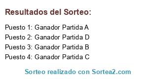 Lista de participantes: Ganador Partida A, Ganador Partida B, Ganador Partida C, Ganador Partida D.