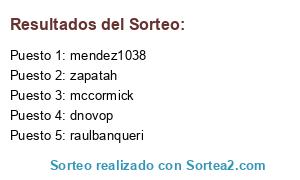 Lista de participantes: josepepe, velawer, dnovop, hectorkiedis, mccormick, raulbanqueri, zapatah, deport, alepere, mendez1038, piero.