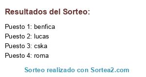Lista de participantes: lucas, benfica, cska, roma.
