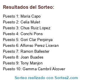Lista de participantes: María Enseñat, Be U Txi, Joan Buades, Gemma Cambril Alcover, Marcos Calafat Mas, Miquel Pastor Pascual, Edurne Camacho, Ramon Ballester, Ronie Riquero Garcia, Juanjo Juan, Alfonso Perez Liceran, Chus Ruiz Lopez, Santiago Velasco Mombiedro, Pedro Jose Capo Morlà, Bayas Dunkel, Silvia Garcia Marin, Gori Clar Perpinya, Alejandra Pico Fieraert, Marcos Perona Izquierdo, Angelines Cuevas, Raquel Pulido Olivares, Rosario Acosta, Paqui Marchante Gonzalez, Marga Mart R, Margarita Bauza Felipe, Guillermo Riudala, Emi Calvo Copete, Tonia Vilafranca Sorá, Gregorio Leon Portella, Mar Nicolás, Marga Bosch, Conchi Pons, Caty Payeras Moya, Alejandra Garcia, Pedrojose Andreu Sastre, Sisa Talavera, Tony Manjon, Ginesa Mendez, Salvador Aguilo, Cati Miralles Martorell, Roca C. Carreras, Maria Capo, Celia Mulet, Catalina Siquier Torres, Irene Muñoz, Chari Moreno Riquelme, Flornieto2011, Brocao13.