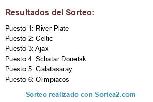 Lista de participantes: Schatar Donetsk, Celtic, Galatasaray, Olimpiacos, Ajax, River Plate.