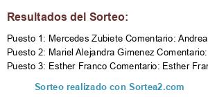 - Ganador 2: Mariel Alejandra Gimenez Comentario: M Ines Diiez Iane Varela Marianela Franchini