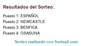 Lista de participantes: BENFICA, ESPAÑOL, OSASUNA, NEWCASTLE.