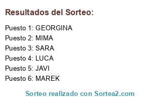 Lista de participantes: SARA , LUCA , GEORGINA , JAVI , MIMA , MAREK.