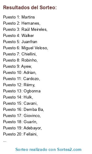 Lista de participantes: Jõao Moutinho ,, Witsel,, Di Natale,, Ogbonna, David Luiz,, Ramires,, Mata,, Juanfran, Pirlo,, Cassano,, Chiellini,, Marchisio,, Sneijder,, Guarín,, Gargano,, Álvaro Pereira,, Filipe Luís,, Cardozo,, Michel Bastos,, Gomis,, Rodrigo Palacio,, Demba Ba,, Papiss Cissé,, Cabaye,, Tioté,, Fellaini,, Mavuba,, Huuntelar,, Lamela,, Adrian,, Robinho,, Adebayor,, Ayew,, Eriksen, Mandanda,, Valbuena,, Rémy,, M´Bia,, Drogba, Hamsik,, Dzagoev,, Doumbia,, Honda,, Ivanovic, Capel,, Izmailov,, Miguel Veloso,, Raúl Meireles,, Felipe Melo,, Negredo,, Trezeguet,, Beñat,, ínan, Klose,, Hernanes,, Martins, - Falcao, - Cazorla, - Walcott, - Etoo, Cavani,, Pato,, Giovinco,, Hulk,, Bale,, Hazard,, Luis Suarez,, Cech, , Ashley Cole,, Walker.