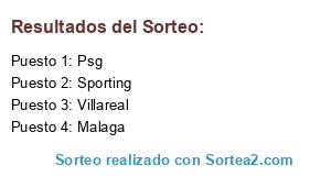 Lista de participantes: Villareal, Malaga, Psg, Sporting.