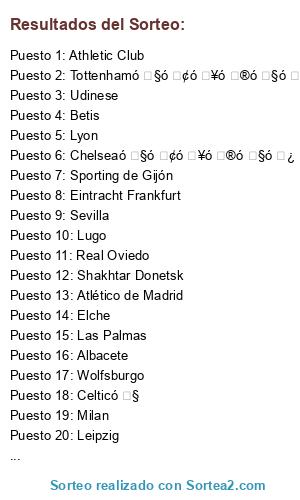 Lista de participantes: Oporto, Roma, Valladolid, Sevilla, Albacete, Girondins de Burdeos, Tottenham, Arsenal, Oviedo, Sunderland, PSG, Chelsea, Millonarios, Borussia Dortmund, Leicester, Inter de Milán.