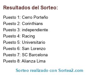 Lista de participantes: Corinthians, Cerro Porteño, Alianza Lima, SC Barcelona, Universitario, San Lorenzo, Racing, independiente.