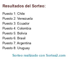 Lista de participantes: Brasil, Argentina, Uruguay, Venezuela, Ecuador, Colombia, Chile, Bolivia.