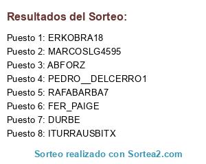 Lista de participantes: ERKOBRA18, DURBE, FER_PAIGE, ITURRAUSBITX, MARCOSLG4595, RAFABARBA7, ABFORZ, PEDRO__DELCERRO1.