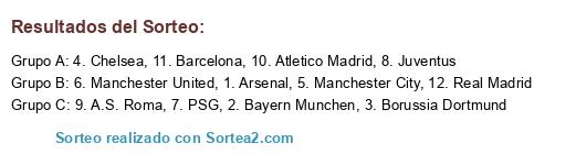 Resultados del sorteo: