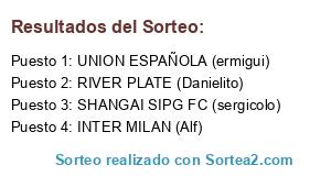 Lista de participantes: SHANGAI SIPG FC (sergicolo), SAO PAULO (Van Vi), BENFICA (Alf), RIVER PLATE (Danielito).