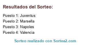 Lista de participantes: Napoles, Marsella, Juventus, Valencia.