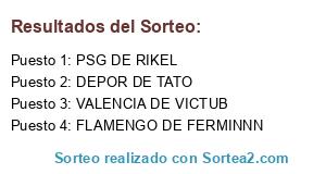 Lista de participantes: PSG DE RIKEL, DEPOR DE TATO, VALENCIA DE VICTUB, FLAMENGO DE FERMINNN.