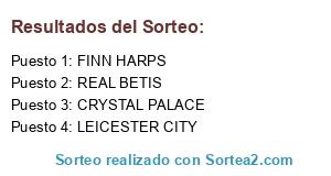 Lista de participantes: LEICESTER CITY, CRYSTAL PALACE, FINN HARPS, REAL BETIS.