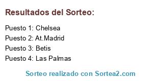 Lista de participantes: Chelsea, Las Palmas, Betis, At.Madrid.