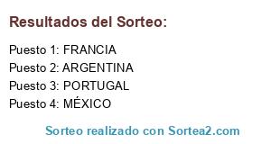 Lista de participantes: ARGENTINA, FRANCIA, MÉXICO, PORTUGAL.