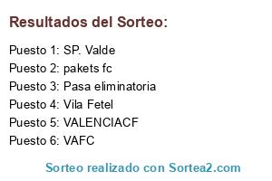 Lista de participantes: VALENCIACF, pakets fc, Vila Fetel, VAFC, SP. Valde, Pasa eliminatoria.